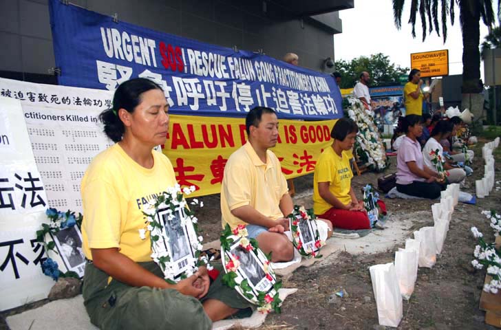 休士顿法轮功学员烛光守夜 悼念在中国大陆为维护真善忍信仰而被迫害致死的同修 美国 2004-7-19