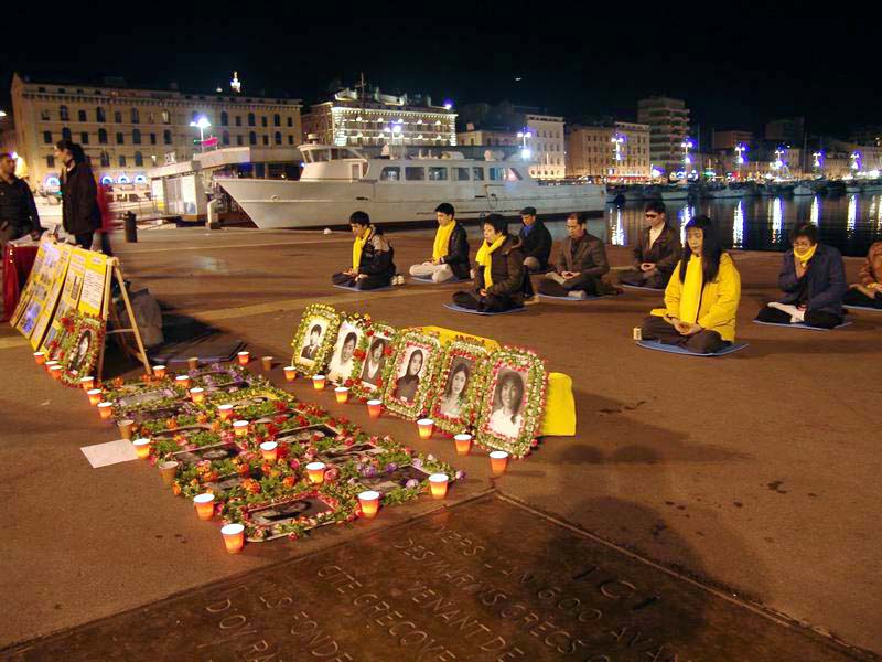 法国法轮功学员在马赛港烛光守夜,悼念在中国大陆被迫害致死的同修 法国 2004-4-17