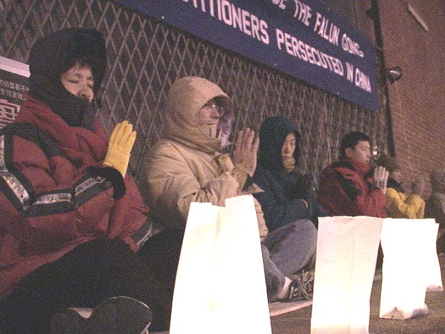 芝加哥地区法轮功学员中领馆前烛光悼念被迫害致死的大陆同修 呼吁立即停止迫害法轮功 美国 2002-7-27