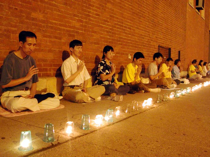 芝加哥法轮功学员烛光守夜,悼念在中国大陆被迫害致死的同修 美国 2004-7-20