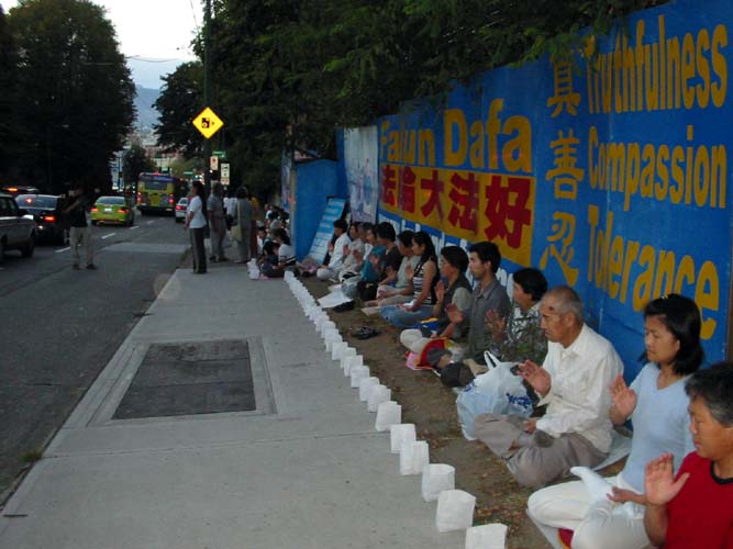 温哥华法轮功学员在中领馆前烛光守夜纪念和平请愿三周年 加拿大 2004-8-20