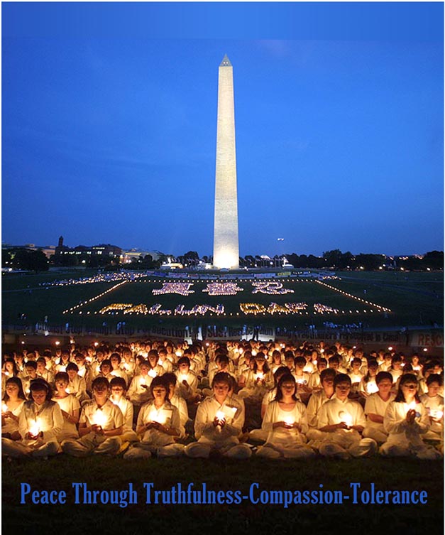 来自世界各地的法轮功学员在华盛顿烛光守夜悼念在中国大陆被迫害致死的同修 美国 2002-7-20