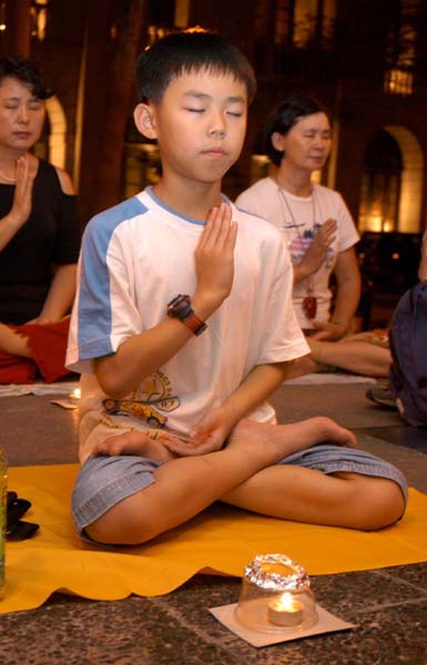 在华盛顿举办的“一起来结束对法轮功的迫害”系列活动之一 烛光守夜  美国 2002-7-20 香港法轮功学员与全球法轮功学员同步举行“全球点亮蜡烛”活动,悼念大陆被迫害致死的同修 香港 2004-7-23