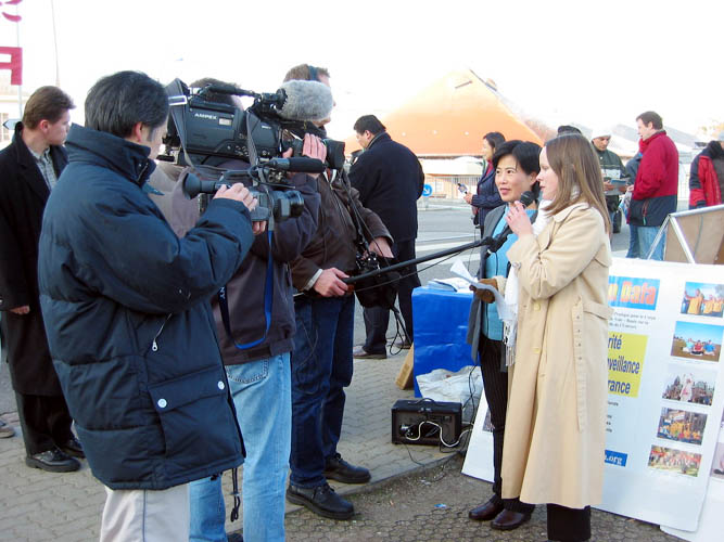 法轮功学员就香港“23条”立法, 在欧洲议会前举行记者会 2002-12-19