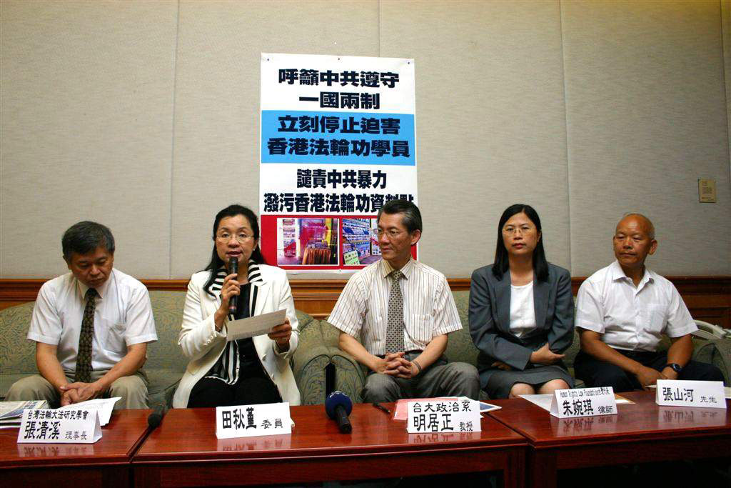 台湾立委谴责中共暴力迫害香港法轮功学员图为大法学会与立委田秋堇召开记者会2007-5-31