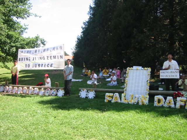 法轮功学员在澳洲中使馆前举办新闻发布会, 要求法办江、罗、刘、周 2004-02-14