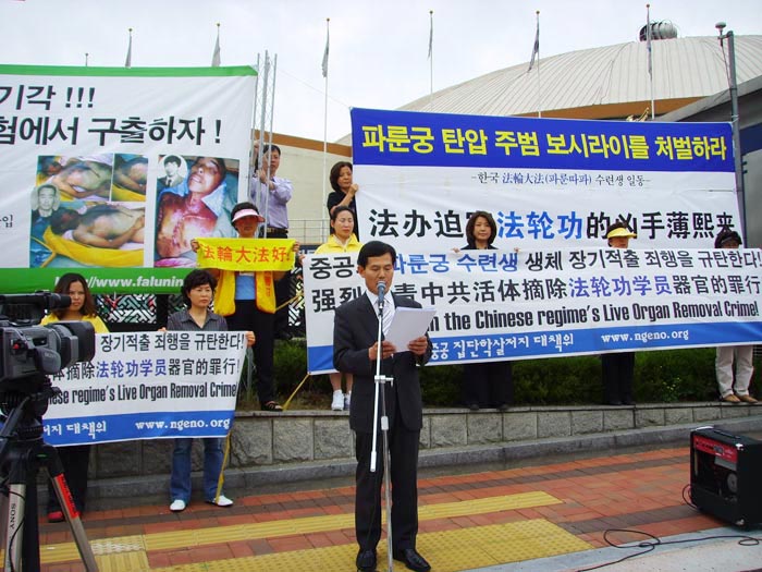 韩国法轮功学员在恶人薄熙来访韩时举行记者招待会揭露薄熙来迫害法轮功的罪行2006-5-25
