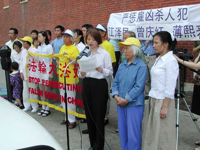 法轮功学员在芝加哥中领馆前召开新闻发布会, 谴责江氏集团南非雇凶杀人 2004-06-29