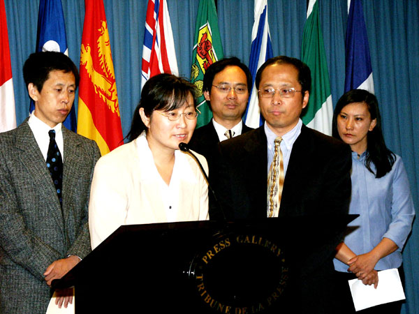 加拿大法轮功学员在国会山举行新闻发布会,呼吁加拿大政府调查中共间谍活动