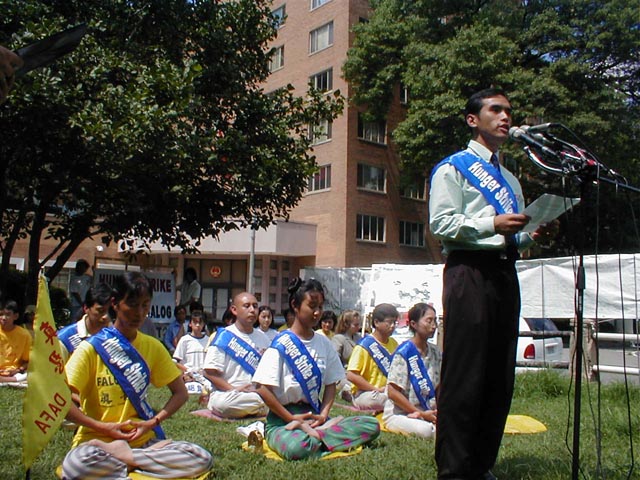 法轮功学员在中国驻华盛顿DC使馆前绝食抗议,并召开新闻发布会 2001-08-20