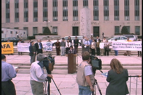法轮功学员华府联邦法院前召开记者会,宣布起诉中国国安部、公安部及CCTV 2002-04-03