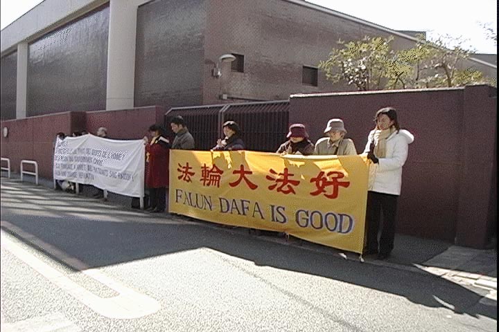 针对法轮功学员在巴黎被非法拘捕事件,法轮功学员在驻日法国大使馆前举行新闻发布会 2004-02-05