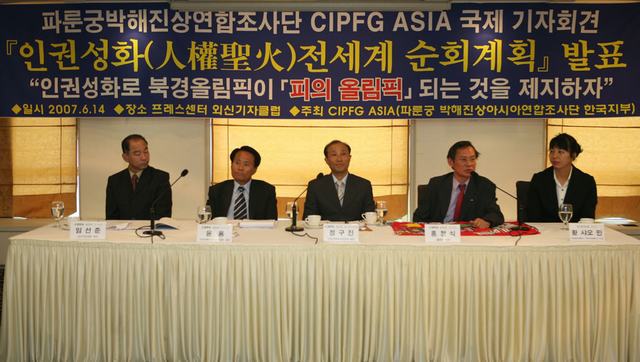 CIPFG亚洲分团举行同步国际记者会图为在韩国举行的记者招待会场2007-6-14