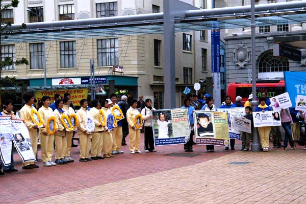 法轮功学员在斯洛伐克组织记者招待会讲真相 2005年“7.20”前夕,新西兰法轮功学员在奥克兰市伊丽莎白广场,举行新闻发布会,呼吁停止迫害