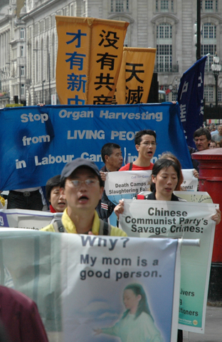 英国法轮功学员伦敦游行,揭露中共活摘器官罪恶 2006-8-26