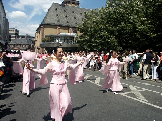 德国法轮功学员参加法兰克福市多元文化节游行获奖,图为学员的舞蹈表演 德国 2004-6-26