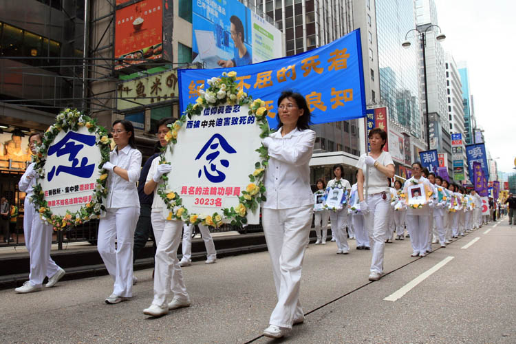 香港声援二千万勇士退出中共游行活动呼吁三退保平安图为悼念被迫害致死的方阵
