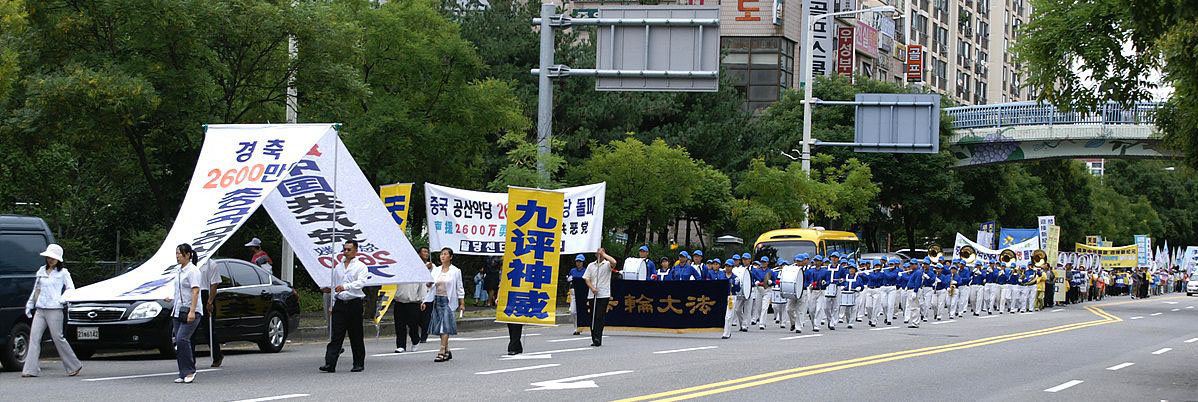 法轮功学员在韩国安阳举办声援二千六百万中国民众三退的集会游行活动2007-9-16
