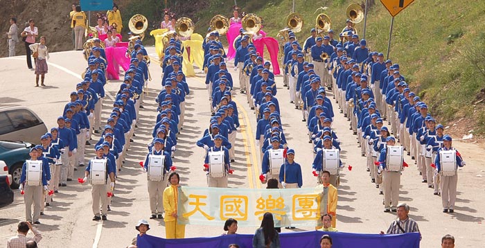 来自世界各地的法轮功学员聚集洛杉矶华埠举行大游行 展现大法的美好 揭露中共的迫害2006-2-26