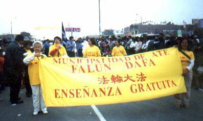 秘鲁法轮功学员首次参加市政厅庆典游行活动 秘鲁 2003-8-4