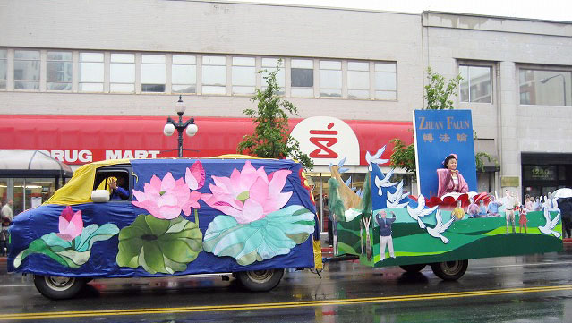 加拿大法轮功学员参加维多利亚节游行,通过电视转播,更多的民众看到法轮大法的美好。2006-5-22