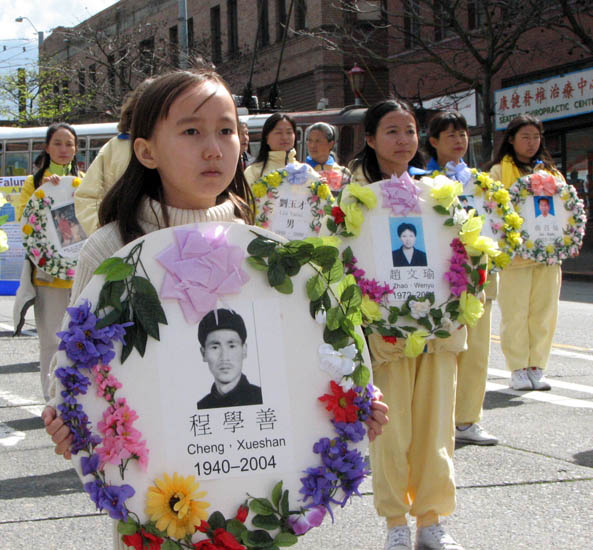 中共党魁访美前夕,法轮功学员于西雅图游行集会,吁调查中共劳教所盗售学员活体器官之恶行 2006-4-17