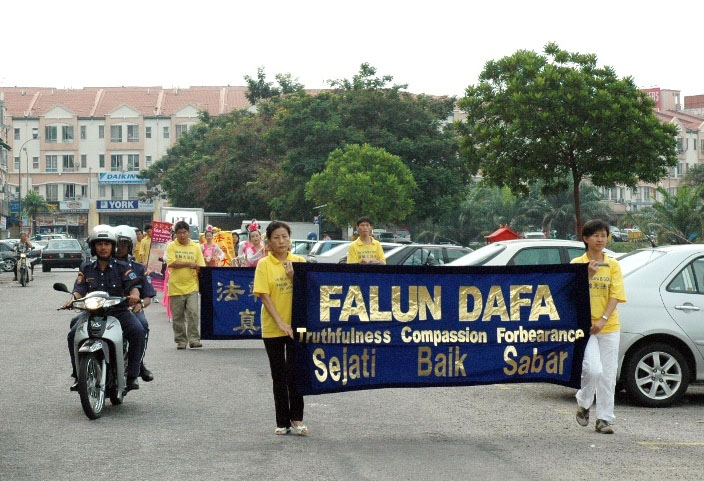 法轮功学员在马来西亚健康嘉年华会上绽放异彩图为环绕嘉年华会会场游行2007-6-29至7-1