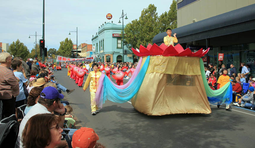 墨尔本法轮功学员参加复活节大游行,向近20万观众展示法轮大法的美好 2006-4-16至17