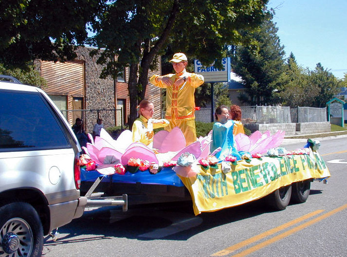 法轮功学员参加爱达华州Coeurd’Alene 的七月四日独立节游行。2006-7-4