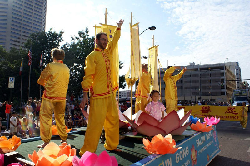 俄亥俄州法轮功学员参加独立节游行 观众喜闻大法福音2007-7-4