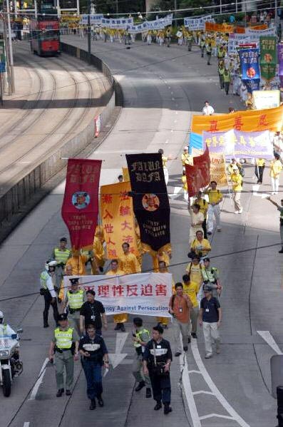 香港法轮功学员举行“法轮功和平理性反迫害”大游行,要求停止迫害法轮功 释放所有被关押的法轮功学员 香港 2004-5-2