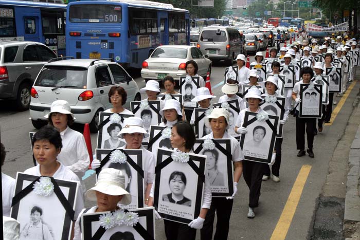 反迫害6周年 法轮功学员韩国首尔市大规模游行 呼吁制止中共对法轮功的野蛮镇压 图为浩浩荡荡的游行队伍