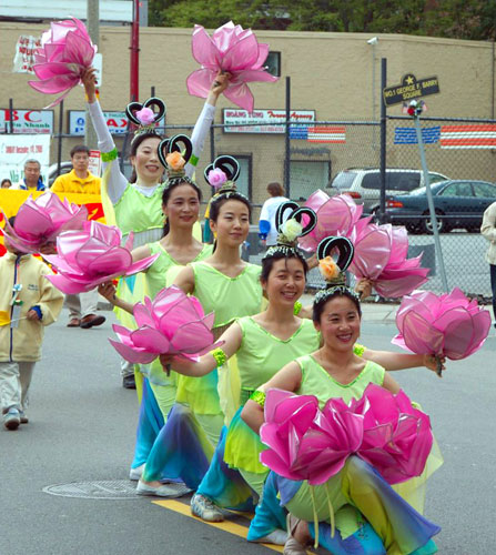 法轮功学员组成的仙女舞蹈队参加在波士顿的Dorchester Day游行,展现学员们多才多艺2006-6-4
