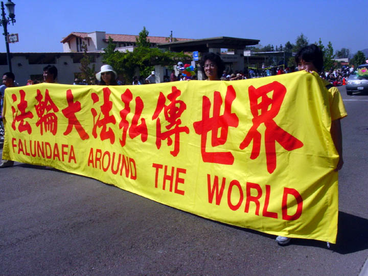 加州圣地亚哥法轮功学员参加鲍威市游行,获得组委会颁发的第二名奖牌  美国 2003-9-13 法轮功学员在旧金山举行盛大游行,庆祝法轮大法在美国西部洪传 并呼吁国际社会帮助制止中国政府迫害法轮功   美国 2003-9-20