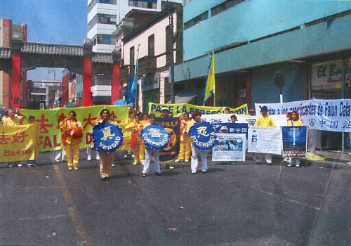 秘鲁法轮大法学员在首都利马游行举行庆祝世界法轮大法日的活动2006-5-7