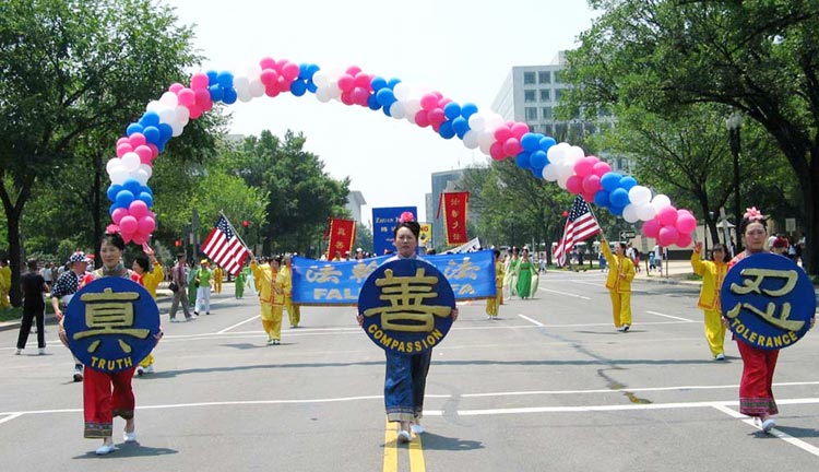 美东法轮功学员在华府参加美国国庆游行 展现大法的美好 2003-7-7