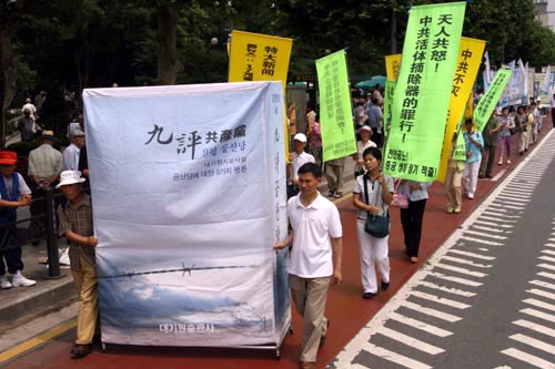 韩国学员在首尔宗庙公园集会,游行声援1200万人退出中共,图为游行队伍2006-7-30