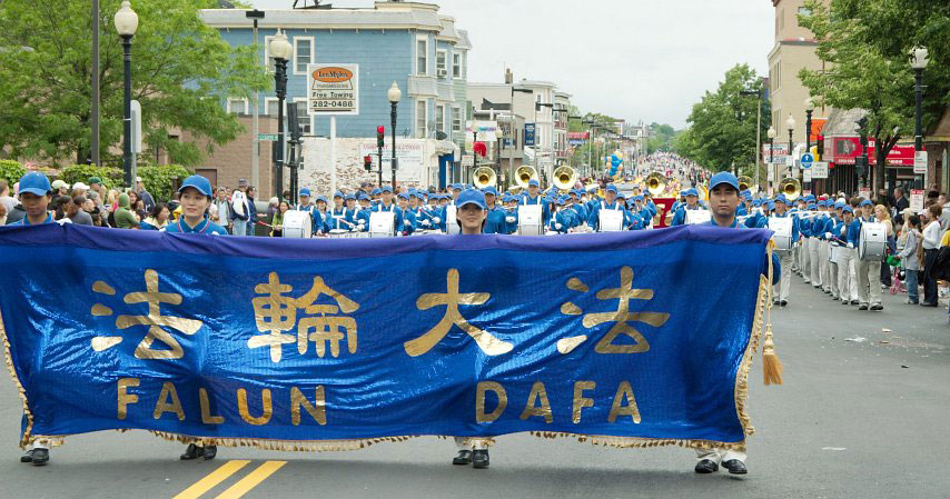 法轮功学员参加在波士顿的Dorchester Day游行,展现大法的美好.2006-6-4
