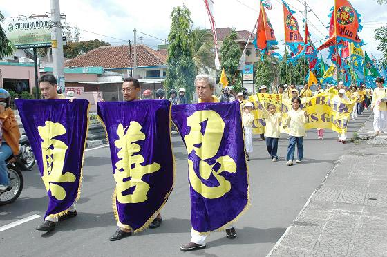 法轮功学员在印尼中爪哇省首次举办“法轮大法心得交流会”以及游行庆祝活动 2005-12-25