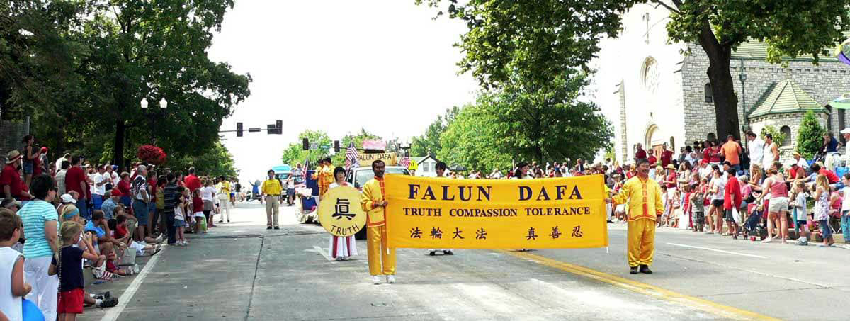 法轮功学员应邀参加密苏里奥法隆独立日游行图为优美祥和的游行队伍2007-7-4