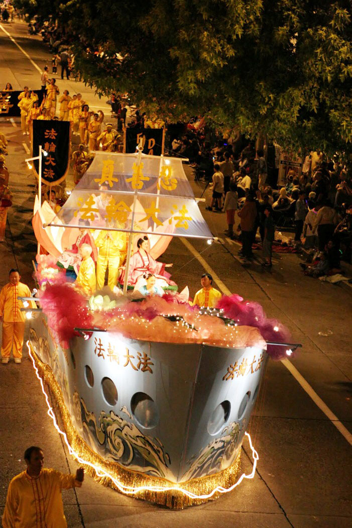 法轮功学员应邀参加西雅图海洋节炬光游行,图为气势宏伟的“大法船”2006-7-29 日本法轮功学员在繁华市区举行游行呼吁日本各界了解法轮功真相及关注中共活体摘取法轮功学员器官的暴行 2006-8-26