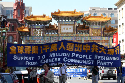 台湾法轮功学员在中共现任党魁访美期间参加声援千万退党大游行 2006-4