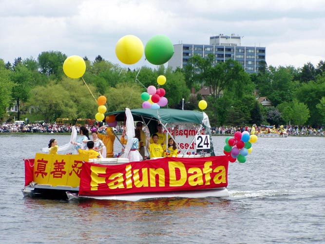 加拿大法轮功学员参加首都渥太华举行的郁金香节花船游行 加拿大 2004-5-23