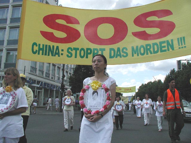 德国法轮功学员在柏林举行SOS呼吁紧急救援大游行,呼吁世人了解法轮功真相,共同制止迫害 德国 2001-7-20