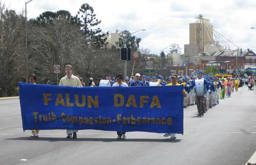 昆士兰法轮功学员参加澳洲图文巴花车大游行备受欢迎 2006-9-16