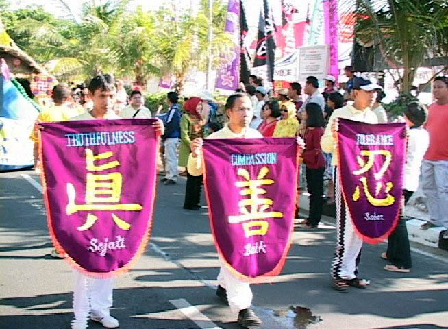 法轮功学员参加印尼巴里岛的游行展示法轮大法的美好 印度尼西亚 2003-10-12