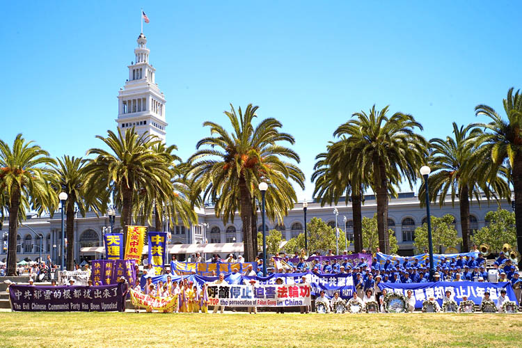 湾区学员与各界人士在中国城花园角集会 呼吁共同制止发生了八年的、对法轮功的持续迫害2007-7-14