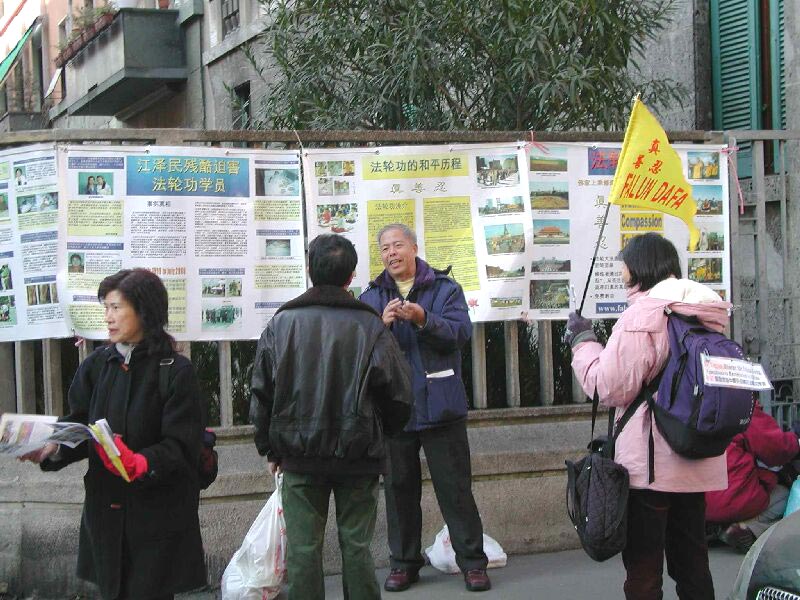 法轮功学员在意大利米兰华人区讲述法轮功真相 2002-01-14