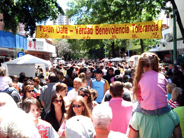 法轮大法在阿根廷中国城新年园游会上引来人山人海的游客图为园游会拥挤的人潮。