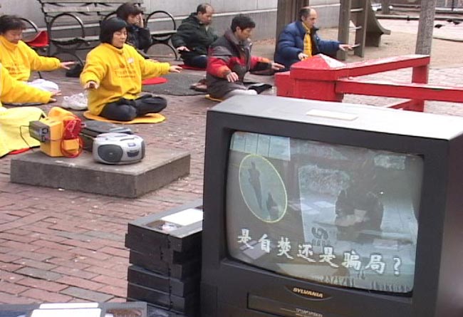 波士顿法轮功学员在唐人街讲述法轮功真相 2002-01-14